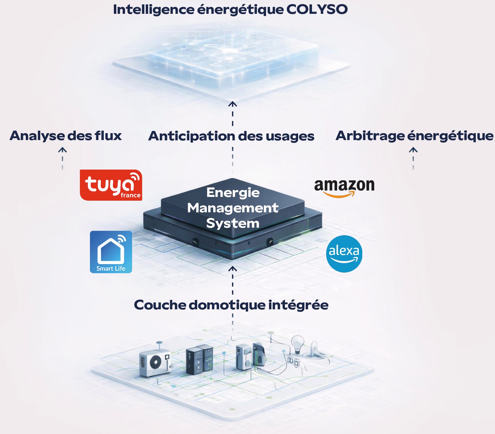 Le pilotage énergétique COLYSO repose sur une plateforme cloud sécurisée, accessible via les applications Tuya et Smart Life.