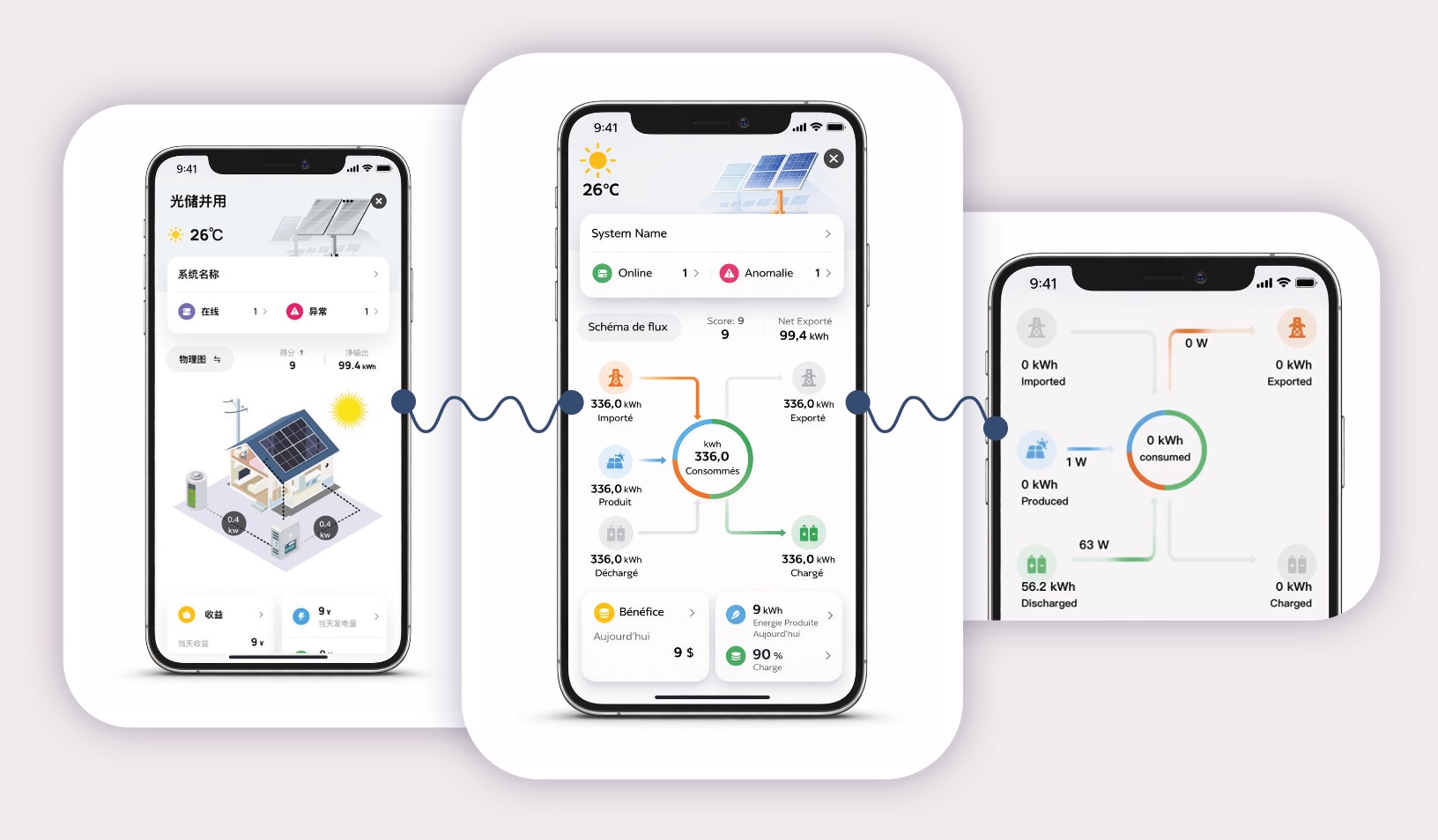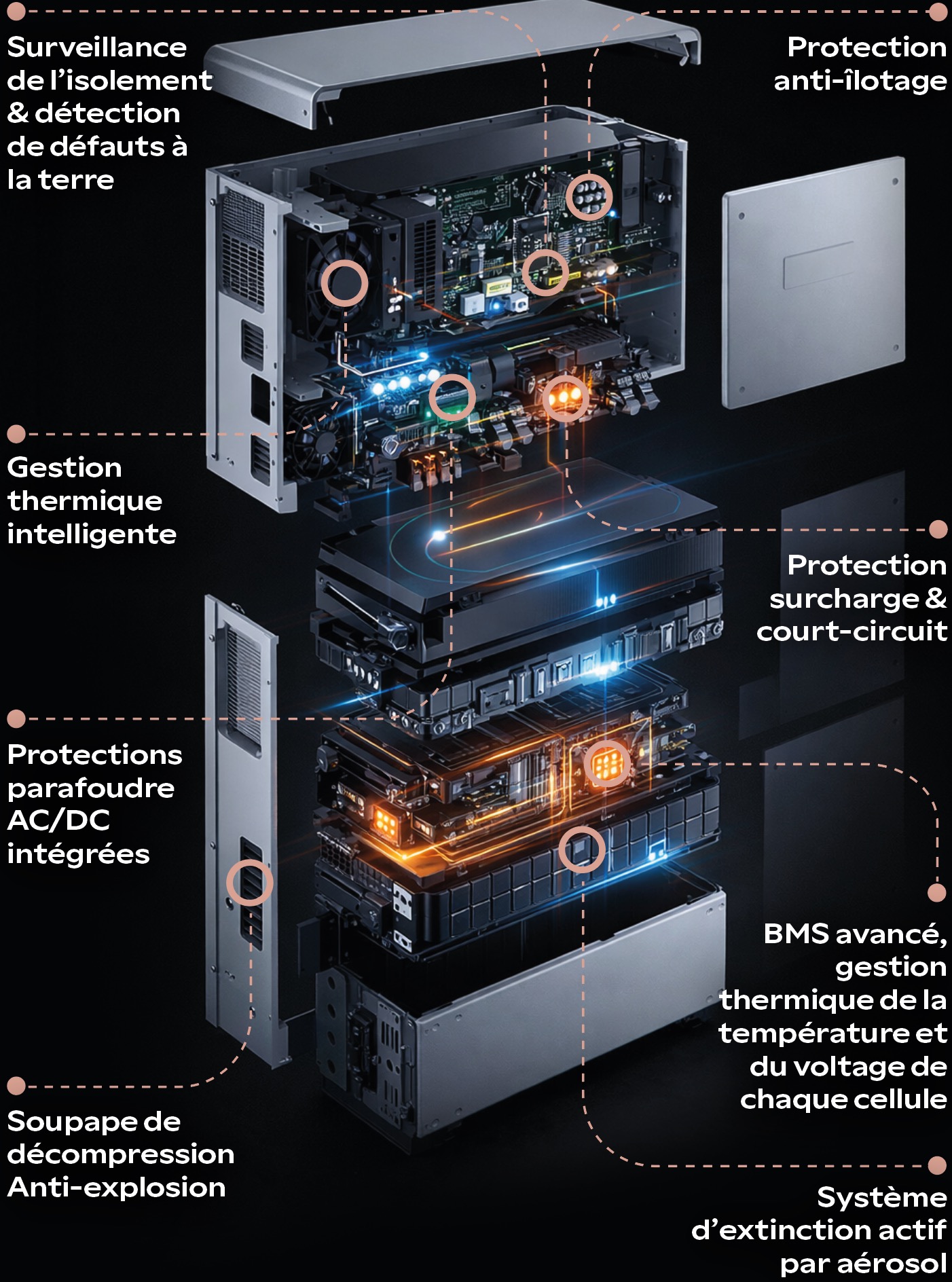 • Onduleur hybride, batterie, BMS et EMS