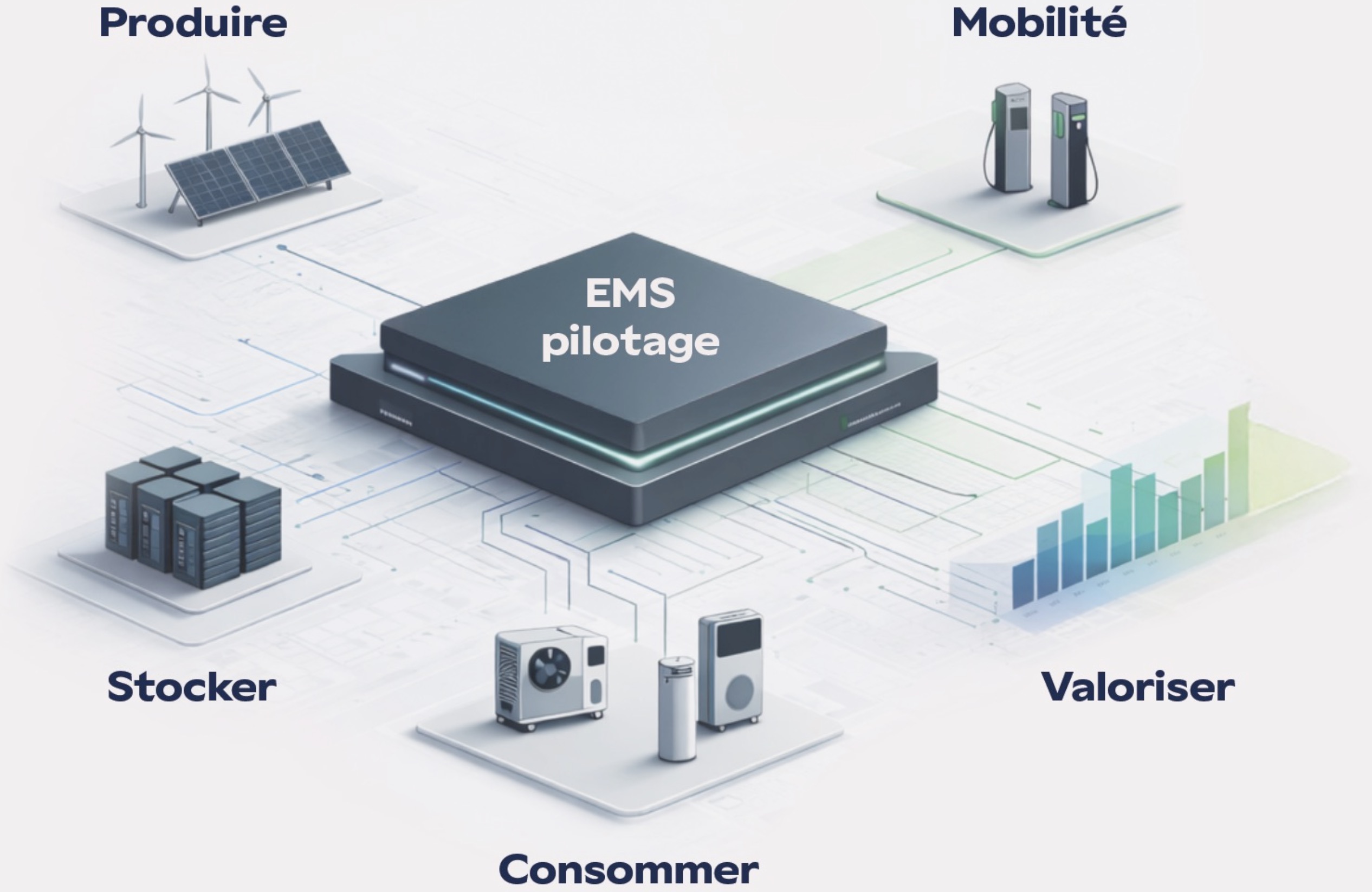 Produire, stocker, consommer, valoriser et piloter la mobilité.
